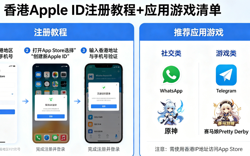 其实注册香港Apple ID一点都不难,不用香港手机号,不用香港银行卡,内地用户在家就能操作。今天这份攻略,就用最直白的语言,把注册步骤、避坑技巧、热门应用游戏,还有使用注意事项一次性说清楚,新手跟着做,全程零失败,轻松解锁港区所有资源。