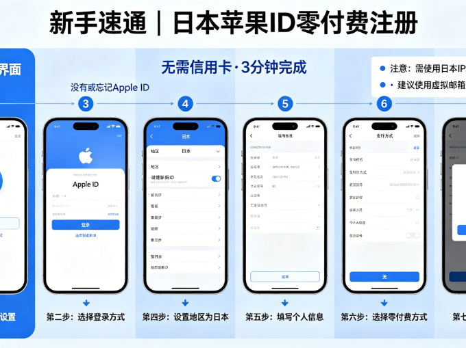 二、核心教程:日本苹果ID注册(零付款,一次性成功)
